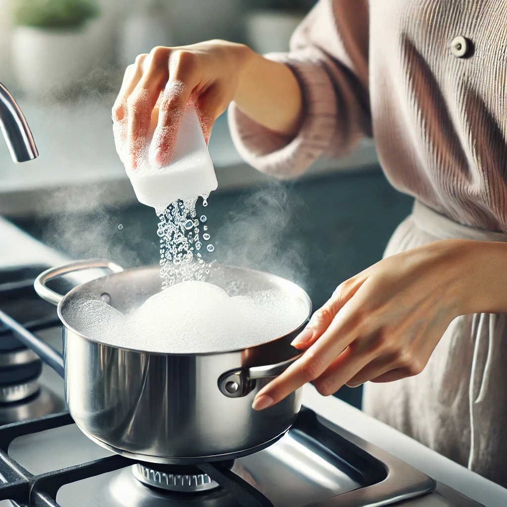 👉 베이킹소다와 물을 2:1 비율로 섞어 바닥에 바른 후 약불에서 5분 정도 끓이세요.