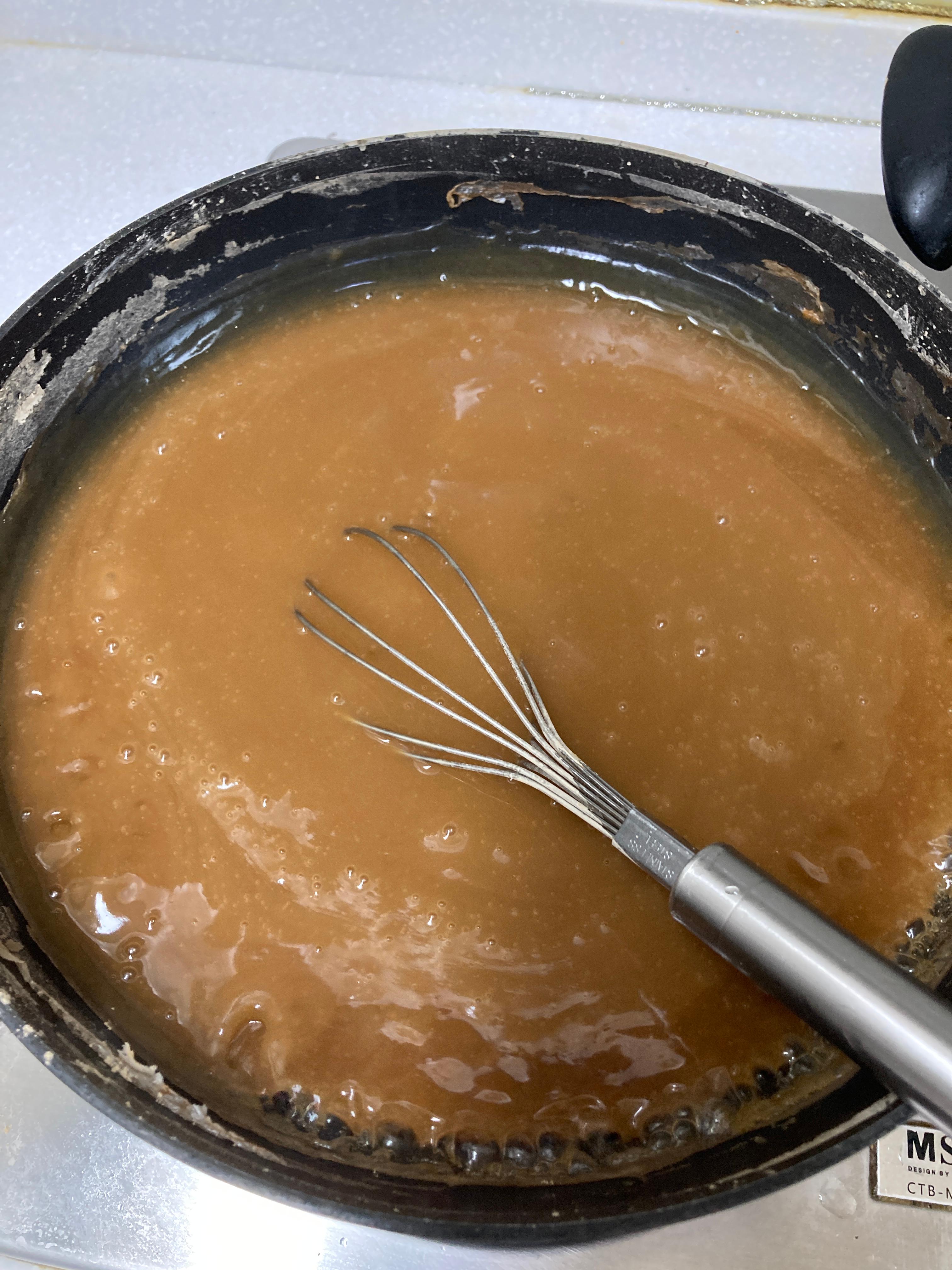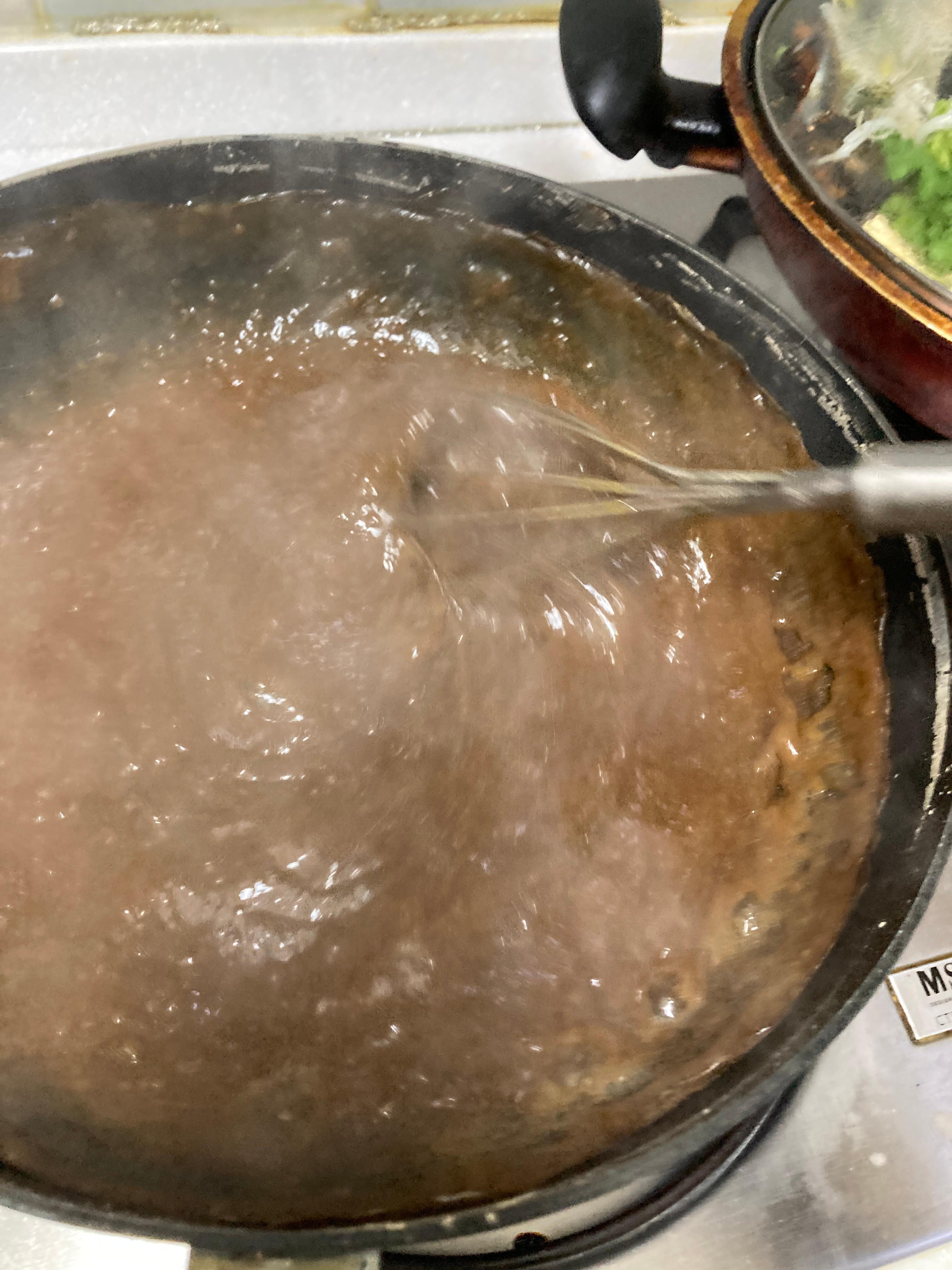 - 중간 불에 두고 거품기로 계속 저어주세요.