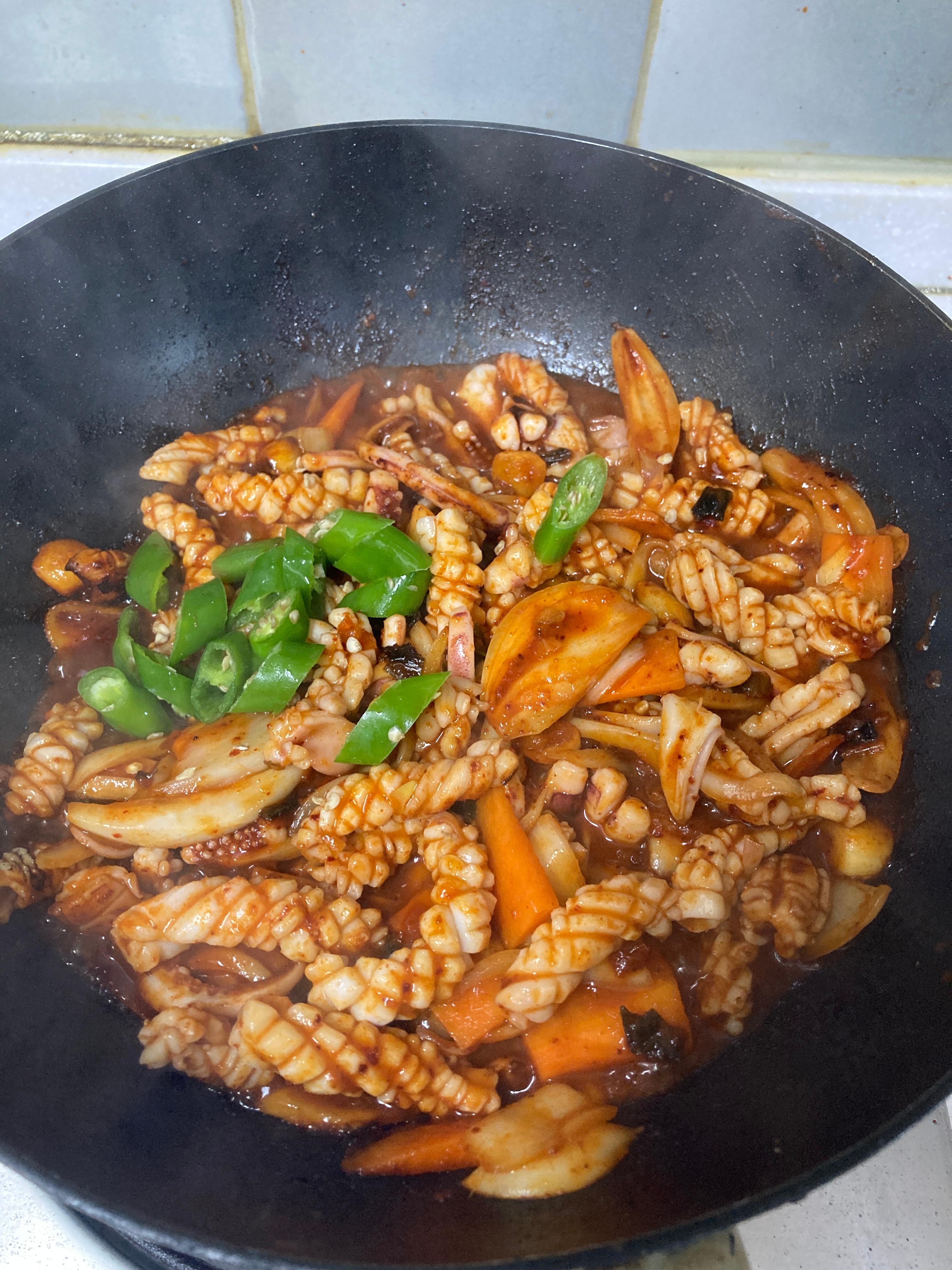 👉 2분 정도 익히면 양념이 오징어에 쏙쏙 배어요.
