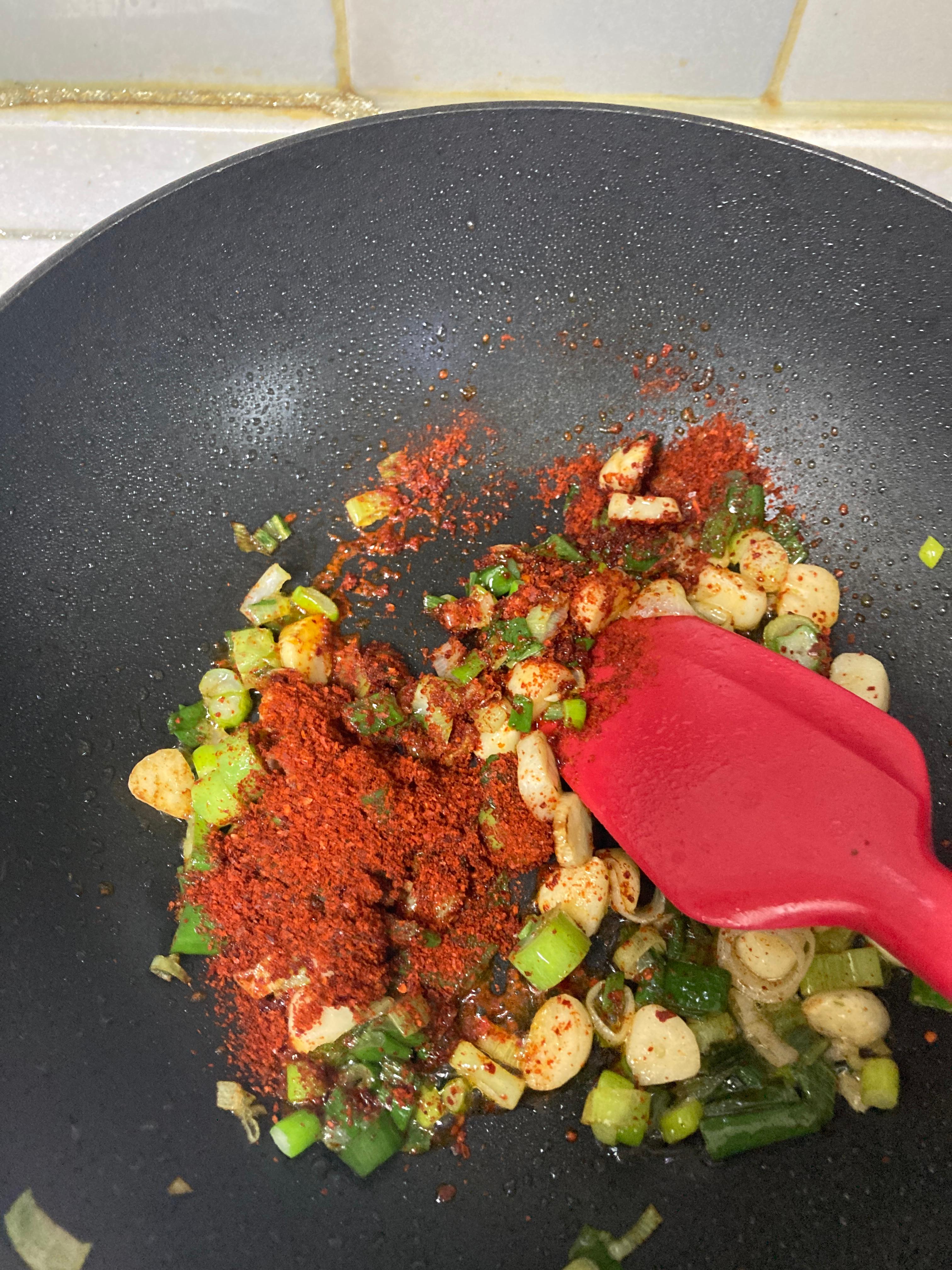 👉 고추기름이 지글지글~ 빨간색이 올라오면서 불맛이 피어오를 거예요. 😆🔥