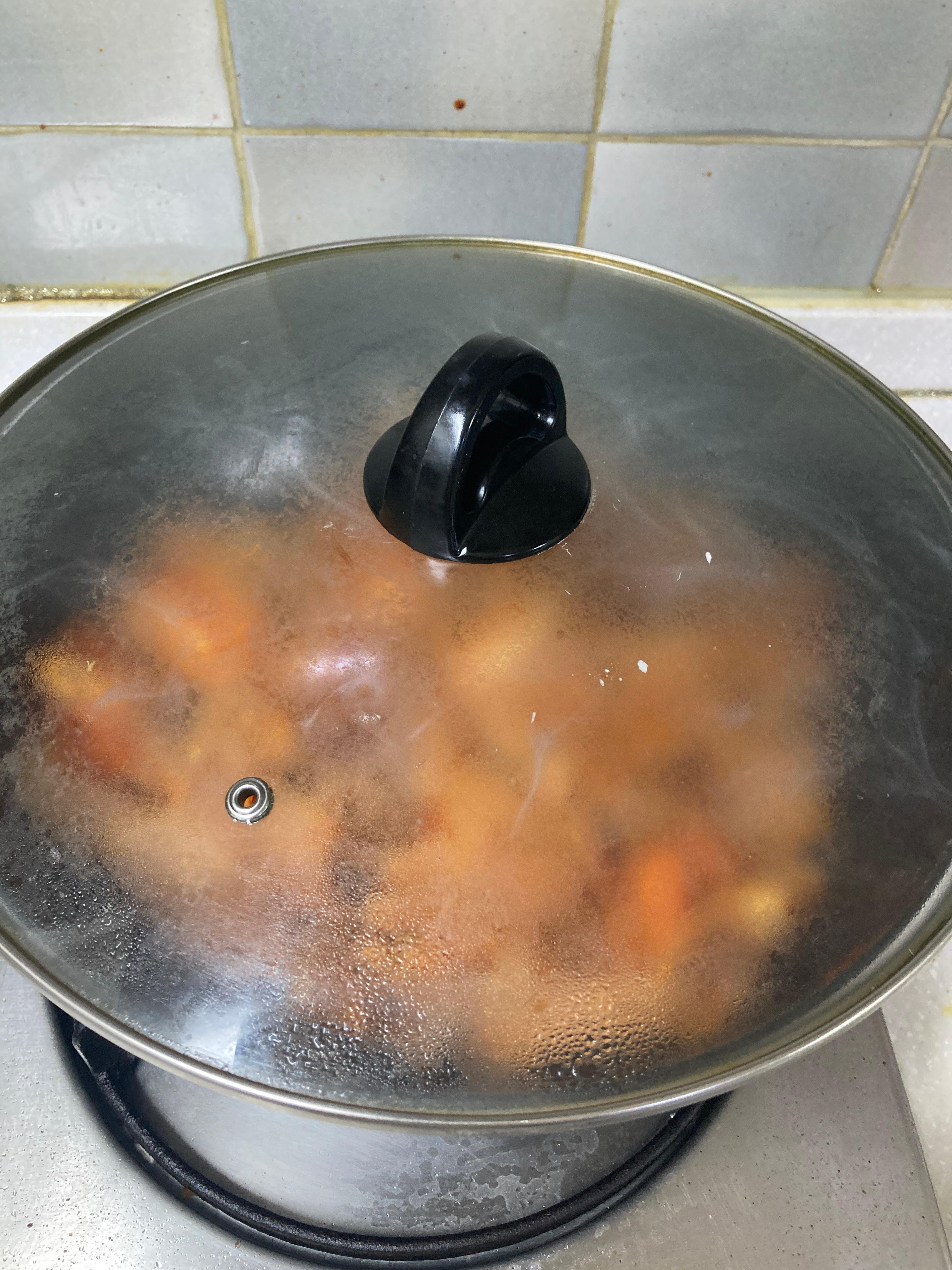 오징어가 반쯤 익었으면 불을 중불로 줄이고 뚜껑 덮기!