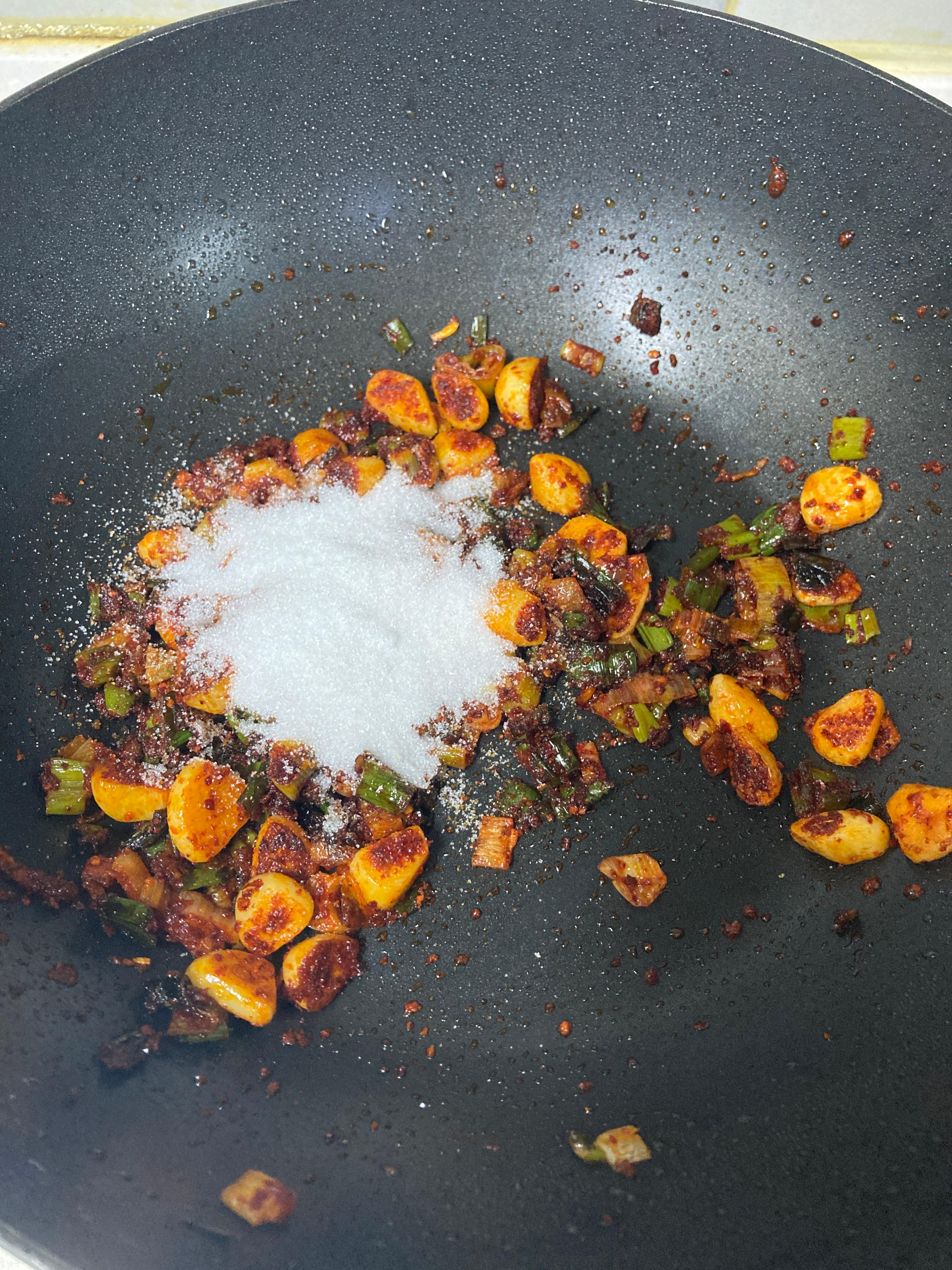 👉 설탕이 녹으면서 카라멜화가 되는데, 이때 불향이 확 올라와요! 🔥