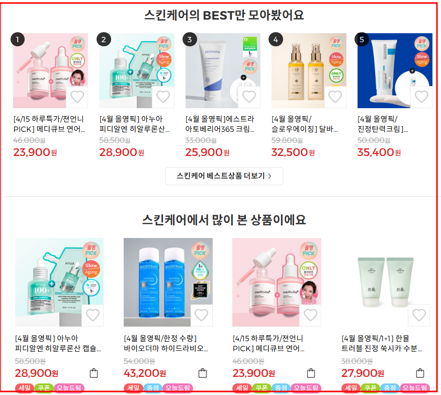 | 🧴 올영픽 | 트렌디한 신상 제품 주간 단위 세일 |