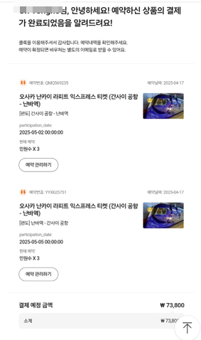 | 항공권 예약 | ✔️ | 왕복 완료 |